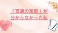 「普通の家庭」が分からない。友達の家に行ったとき、「こんな家族って本当にあるんだ」と驚いたことはありませんか。私は高校生になるまで、自分の家庭が普通ではなかったことに気づいていませんでした。もしかすると、それは機能不全家族で育った影響かもし...